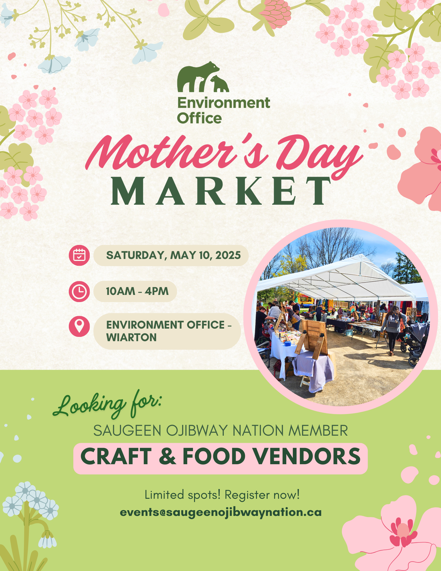 The Mother’s Day Market is coming, and we’re looking for talented Saugeen Ojibway Nation Members to showcase their handmade crafts and delicious food! 🛍️🌿